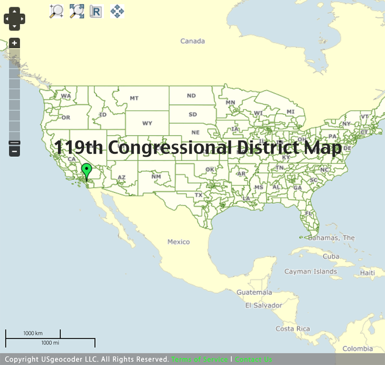 USgeocoder provides you 100% accurate congressional district map with the latest boundaries for the United States 119th Congress.